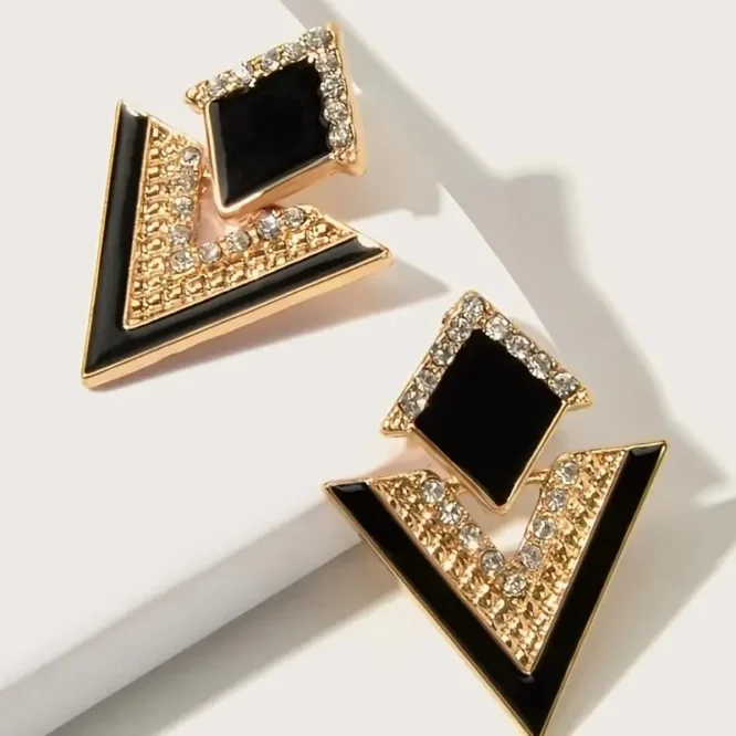 - Elegant Design: The geometric shape and black rhinestones create a sophisticated and stylish look.